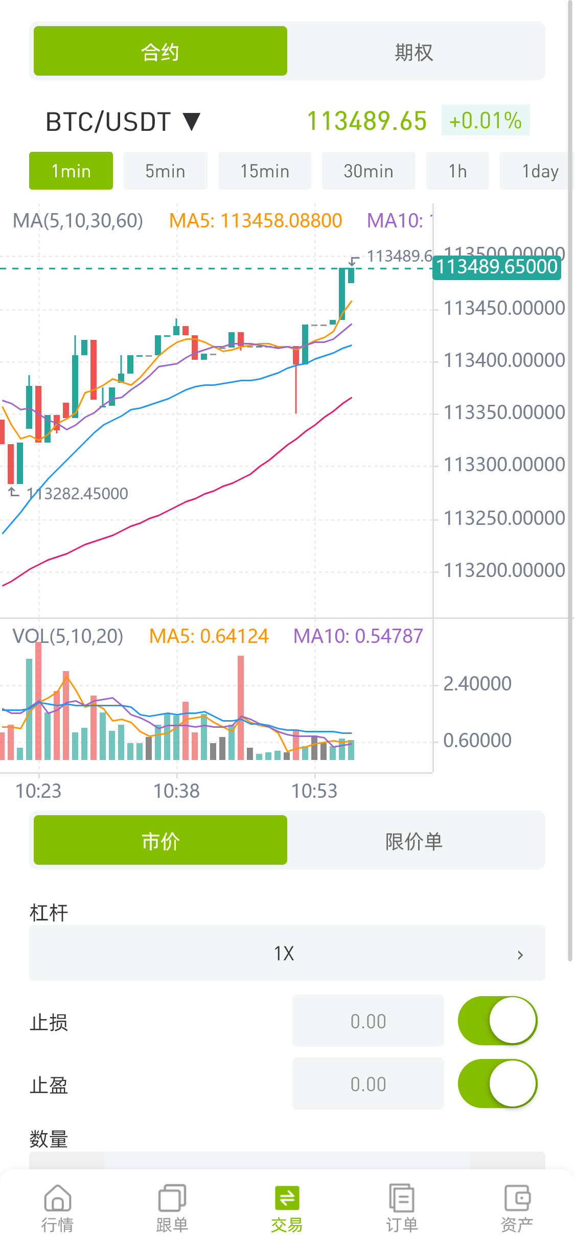 3、跟单,理财功能。市价交易,止盈,止损设置
