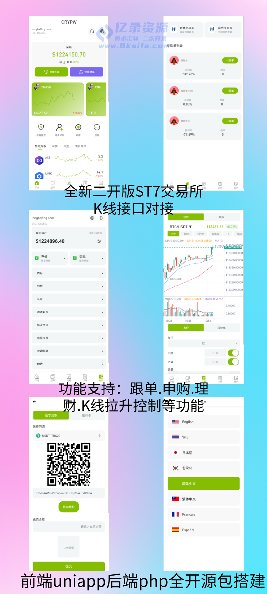 全新二开版ST7交易所系统,K线接口对接付费接口(https://alltick.co),产品可以任意添加