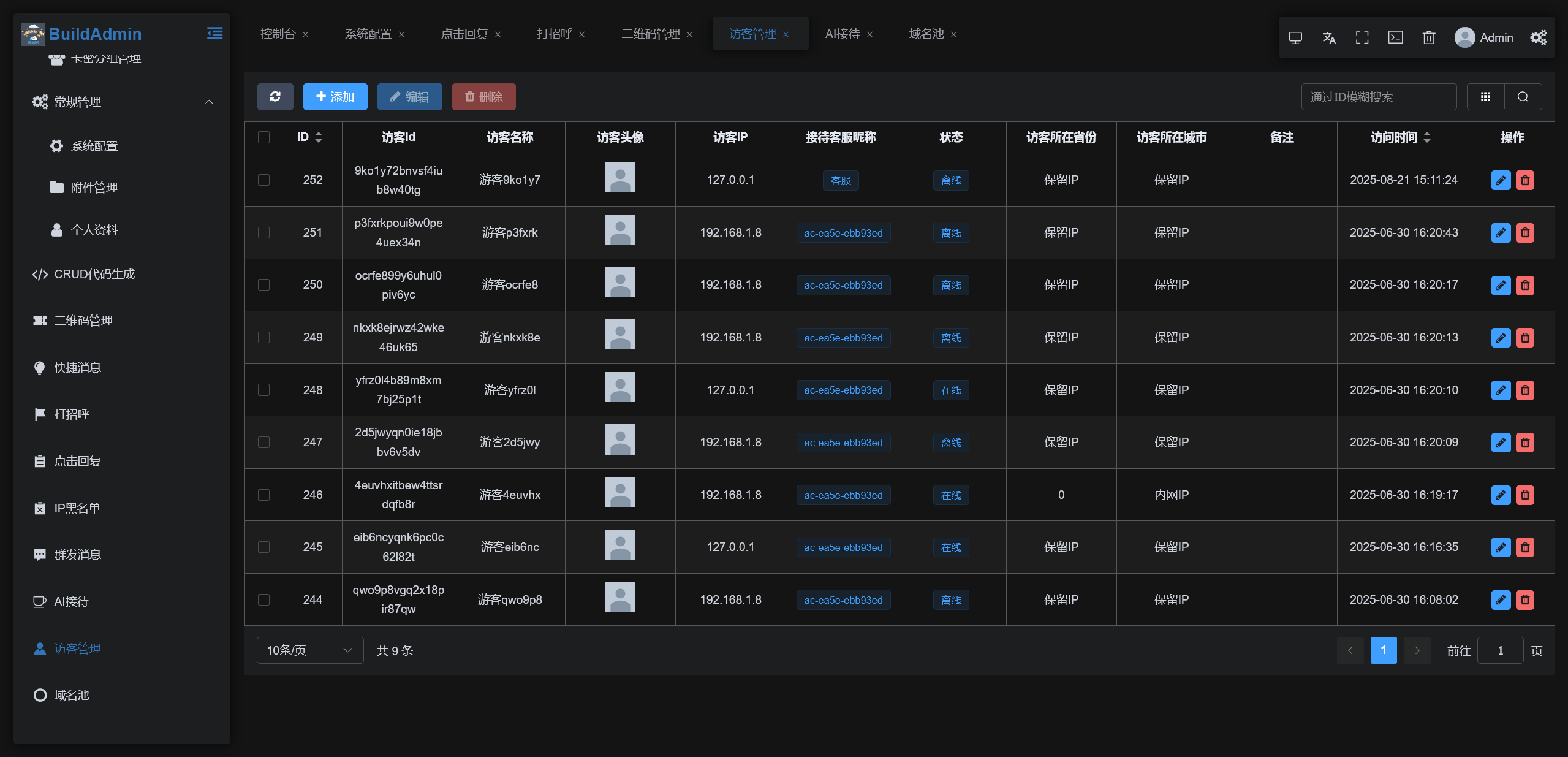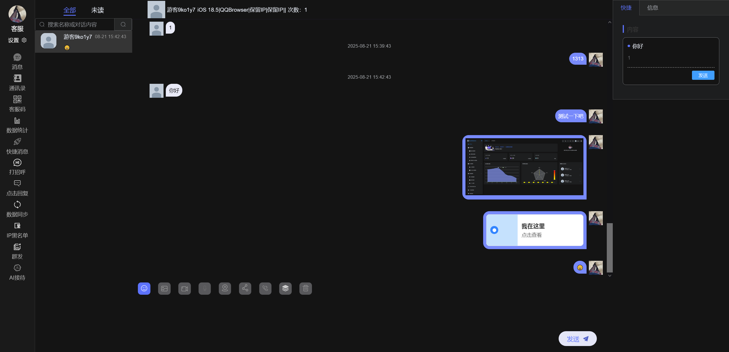 • 数据备份 – 建议定期备份重要客户数据和聊天记录